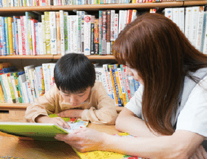 親子で一緒に本を読んだり語りあったりできる、楽しい学びのスペースです。親子で学び語り合うのに必要な、絵本・児童書・図鑑・事典などの書籍が、英語・日本語の両方で三千冊以上あり、知育・教育系のゲームなども揃っています。